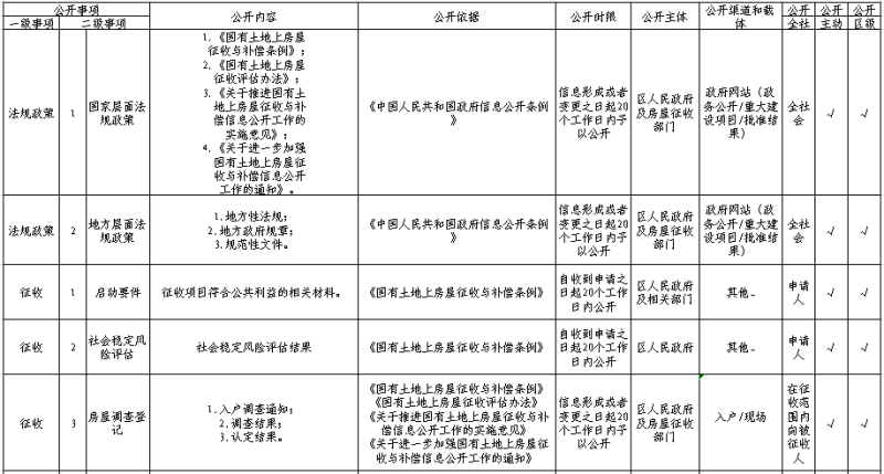 国有土地上房屋征收与补偿领域政务公开事项标准目录