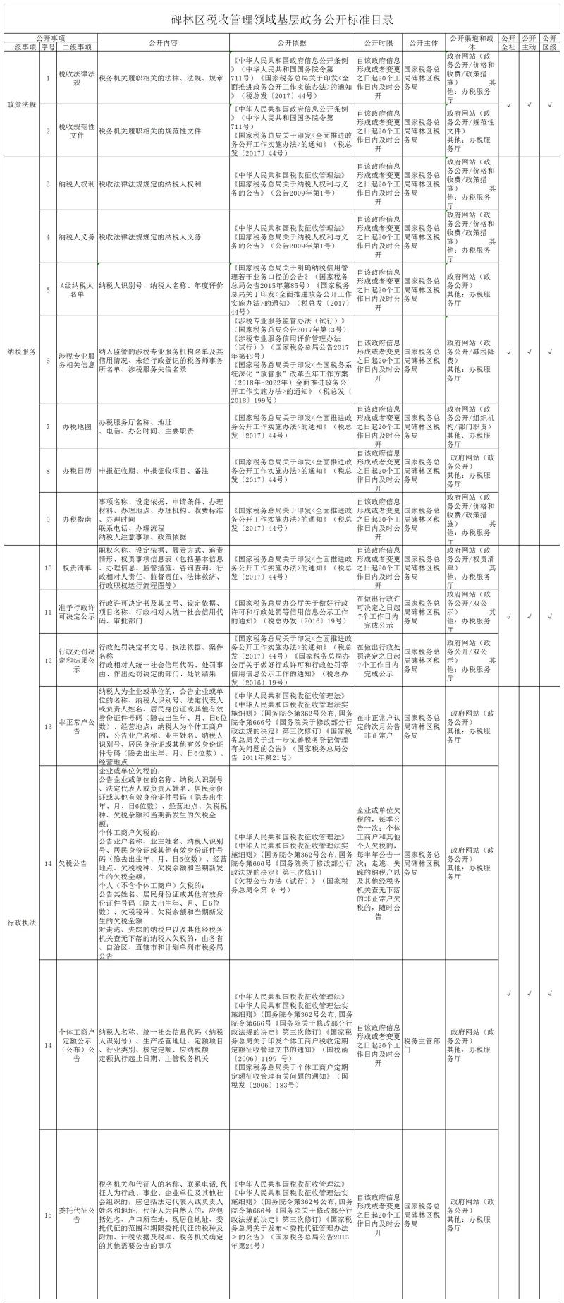 碑林区税收管理领域基层政务公开标准目录