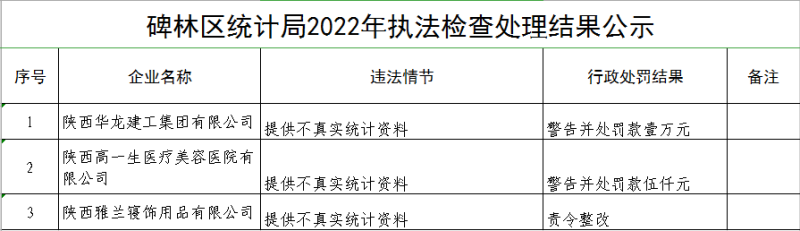 碑林区统计局2022年执法检查处理结果公示