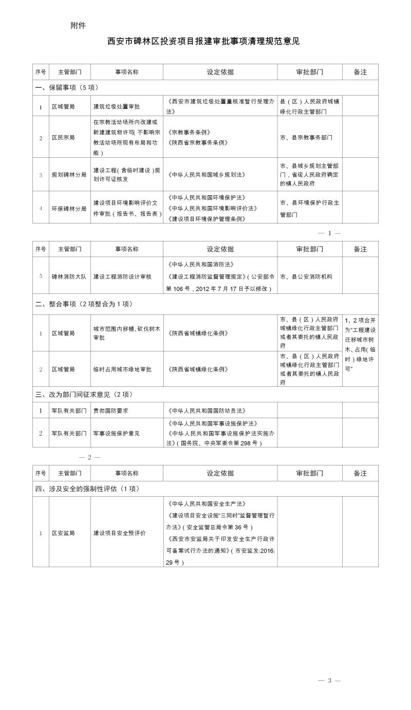 附件:西安市碑林投资项目报建审批事项清理规范意见汇总表