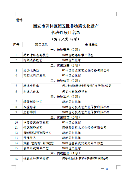 附件:西安市碑林区第五批非物质文化遗产代表性名录