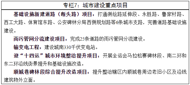 实施城市更新加速行动。有序推进城市片区更新改造,优化提升交通路网体系,推进道路系统建设,布局建设新一代信息基础设施,打造环境优美、配套完善、布局合理的城市综合承载系统。