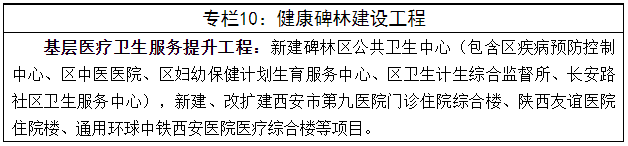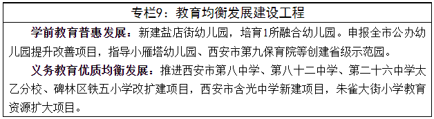 5.“十项重点工作”:大力发展开放型经济;推进绿色发展,建设生态西安;全力迎接“十四运”,提升城市规划建设管理水平;优化营商环境,推进重大项目建设;着力发展实体经济、建设先进制造业强市;扎实加强文化建设,促进文化旅游融合发展;扎实保障和改善民生,建设教育强市;深入实施乡村振兴战略,促进城乡融合发展;大力推进军民融合发展;强化人才队伍建设和科技创新。